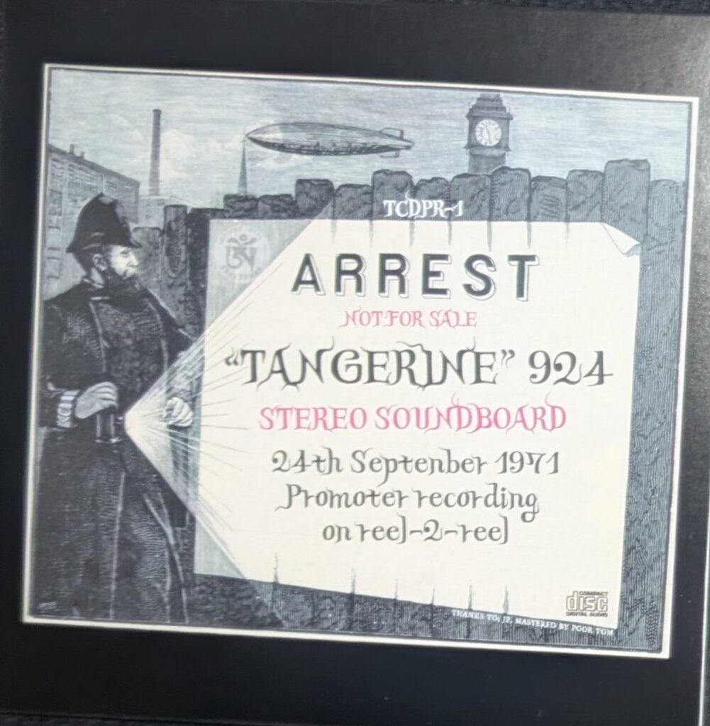 A sampler CD titled “Arrest – Tangerine 924” released by the bootleg label contained the recording of “Tangerine”, suggesting further material from the recording may emerge in the future.